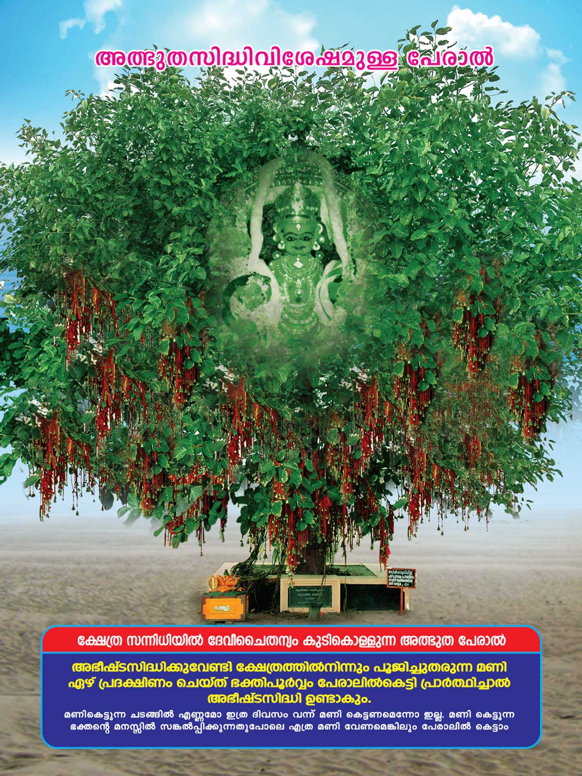 ലോകത്തിന്റെ നാനാഭാഗങ്ങളിൽ നിന്നും വ്രത ശുദ്ധിയോടെ എത്തുന്ന ഭക്തർ, ക്ഷേത്രത്തിൽ നിന്നു പ്രത്യേകം പൂജിച്ചു തരുന്ന മണിയുമായി, ഇവിടെയുള്ള പേരാൽ മരത്തിനു ചുറ്റും ഏഴു തവണ പ്രദക്ഷിണം ചെയ്തതിനു ശേഷം മണി മരത്തിൽ കെട്ടുന്നതോടെ തന്റെ ഏതു ആഗ്രഹവും നടക്കും എന്നതാണ് വിശ്വാസം.